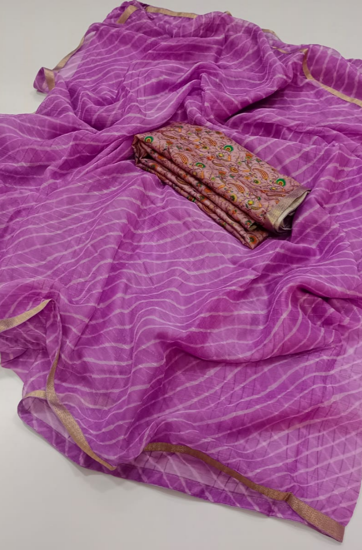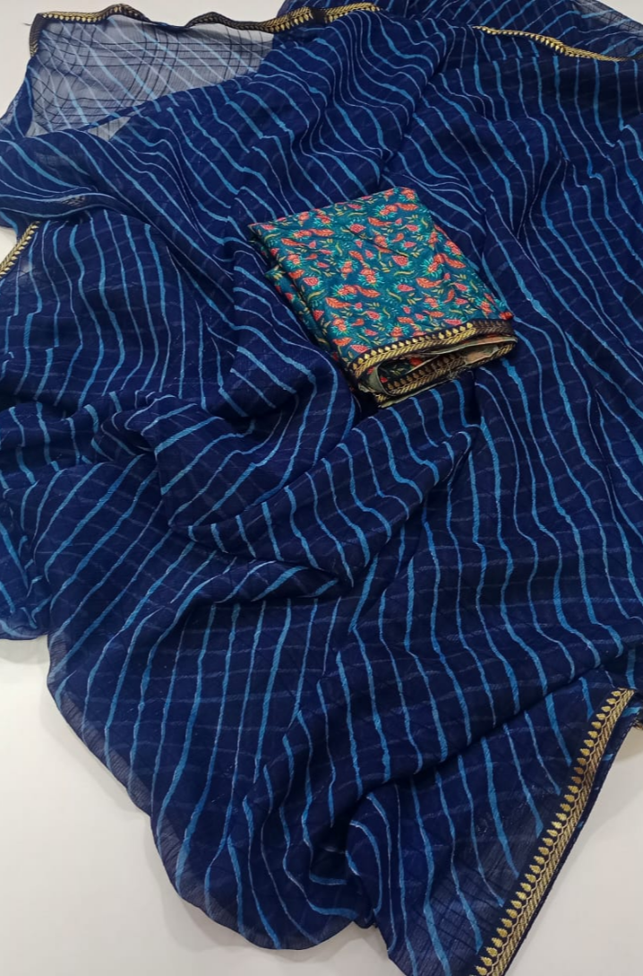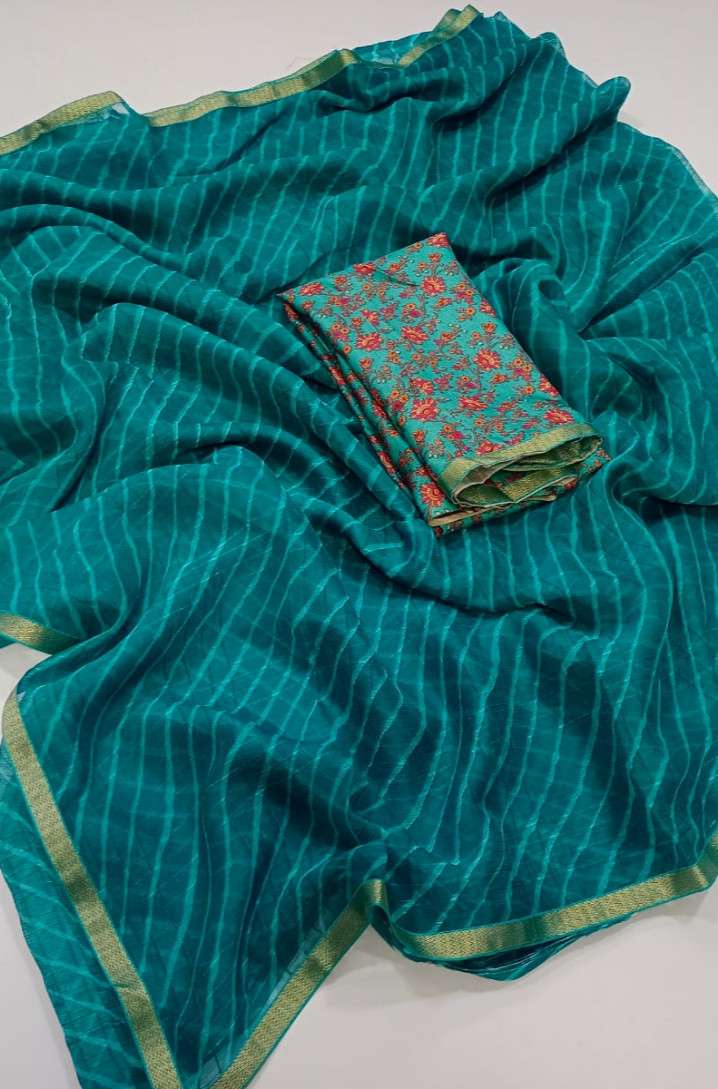 Premium quality Lahariya Chiffon with golden borde