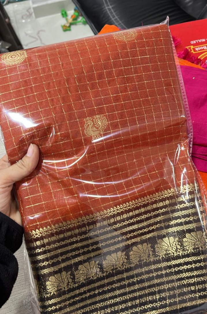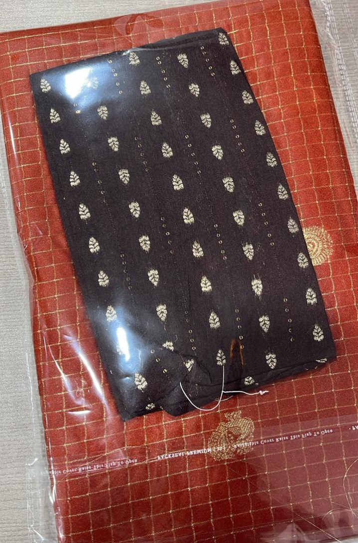 Pure and rich Dola silk with contrast brown blouse
